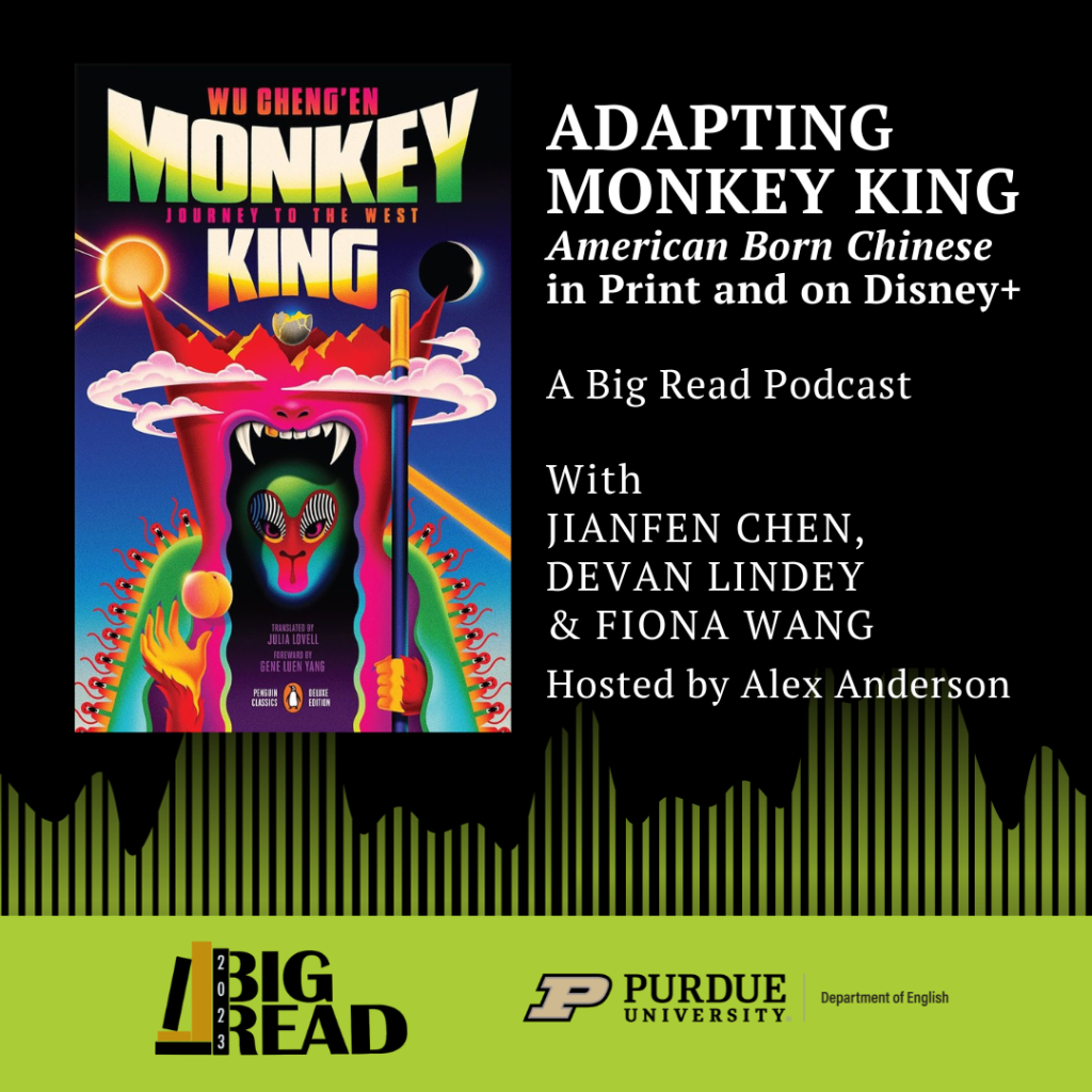 Alex Anderson, Jianfen Chen, Devan Lindey, and Fiona Wang discuss Gene Luen Yang’s graphic novel American Born Chinese (2006), Kelvin Yu’s 2023 series adaptation of the graphic novel for the streaming service Disney+, and Journey to the West‘s cross-cultural longevity.